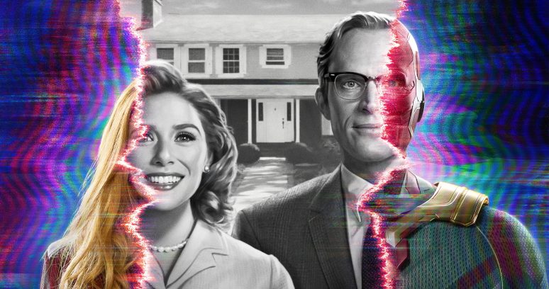 É proposital e talvez um tanto autocongratulatório da parte do Marvel Studios que seja “WandaVision” o projeto escolhido para marcar simultaneamente o retorno do estúdio ao calendário de lançamentos e a primeira incursão de seu universo de heróis pelo Disney+. Isso porque além da “grande homenagem à história da TV” a série focada nos personagens da Feiticeira Escarlate (Elizabeth Olsen) e do Visão (Paul Bettany) também envolve na premissa uma interação muito consciente de formatos já sedimentados no mainstream norte-americano, no caso o do acesso à sitcom pelas tramas rocambolescas dos filmes da marca – que por sua vez já há alguns “capítulos” se assemelham mais e mais ao estilo de uma grande novela bilionária.