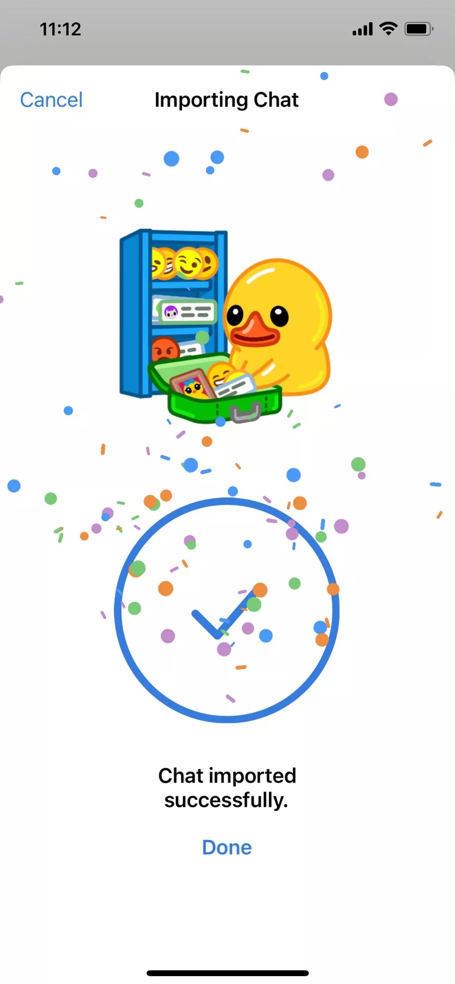 A exportação é feita um chat por vez, resultando sempre na tela abaixo: