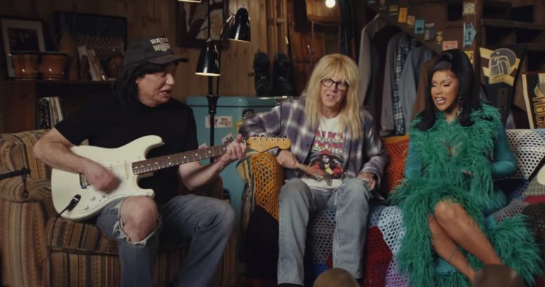 “Ajudar” talvez seja um forte, porém, dado que como tudo no “Wayne’s World” a publicidade sai um pouco errado. De volta aos papeis de Wayne e Garth, Mike Myers e Dana Carvey brincam bastante com o conceito de “mensagem subliminar” no comercial batizado de “Wayne’s World & Cardi B’s Shameless Manipulation”, com direito a todo tipo de prática tosca de anúncios: tem palavra piscando na tela, uso de bebês vestidos com o slogan, vídeos produzidos para “as redes sociais do momento” (TikTok, no caso), e por aí vai. Confira o resultado na íntegra acima.