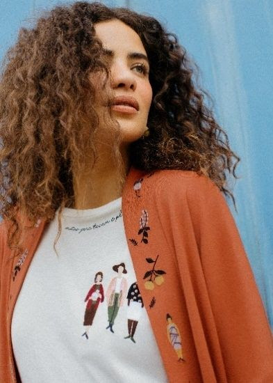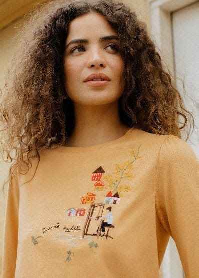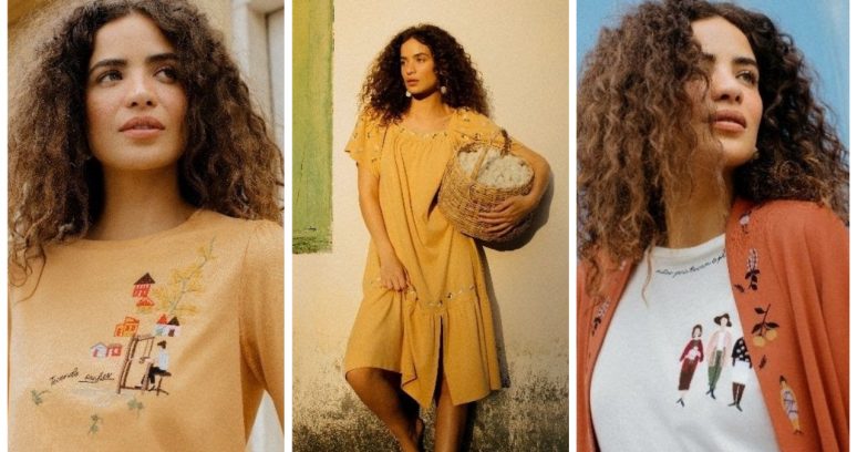 Coleção cápsula é inspirada na história das mulheres da comunidade local, representada nos desenhos bordados manualmente, como flores da casinhas da região