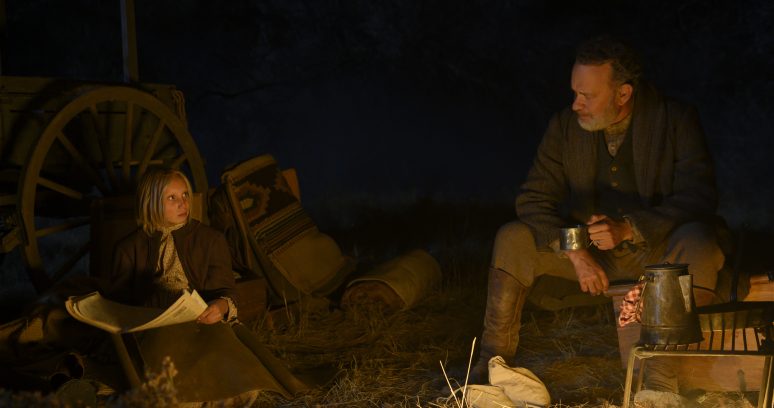 Não surpreende, portanto, que nesse mundo de insensibilidades e violência o personagem com mais empatia seja justamente o que vive viajando e, por isso, não tem raízes em ponto algum: o próprio Kidd. Talvez seja o fato de o veterano ter vivido uma guerra e não ter amarrado sua diligência em nenhum lugar que ele consiga perceber como o egoísmo, a ganância e a desumanidade são algo tão marcante naquela sociedade. Greengrass, porém, se afasta de John Ford e cia justamente na construção do protagonista, já que não há nuances, complexidades ou dilemas, há o personagem que Tom Hanks vem reinterpretando há décadas, a do sujeito incorruptível, de moral e ética indubitáveis.