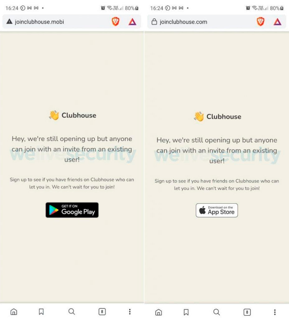 “O site parece real. É uma cópia bem feita do site legítimo do Clubhouse. No entanto, assim que o usuário clicar em ‘Adquira no Google Play‘, o aplicativo será baixado automaticamente para o dispositivo do usuário. Vamos ter em mente que sites legítimos sempre redirecionam o usuário para o Google Play em vez de baixar diretamente o Android Package Kit (APK)”, disse Lukas Stefanko, pesquisador da ESET que identificou o Trojan.