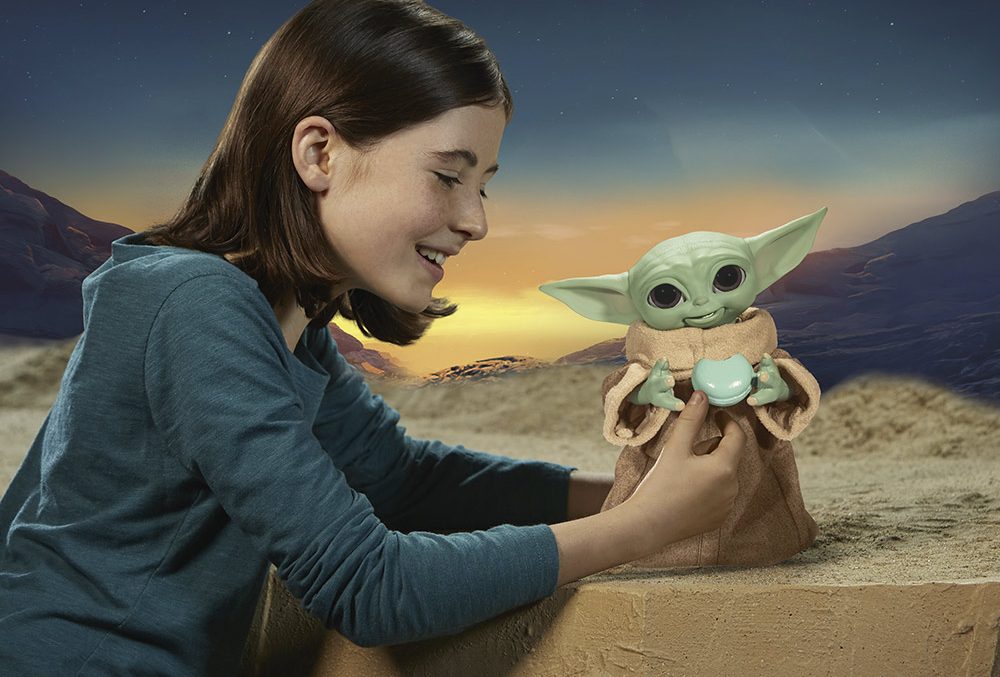 O primeiro Baby Yoda da Hasbro saiu em fevereiro de 2020, após o sucesso do primeira temporada de “The Mandalorian” que estreou em 2019. Segundo a diretora de design sênior da empresa, Vickie Stratford, a marca a ideia de um novo brinquedo veio para explorar o conceito das comidas de Grogu: “Abriu muitas ideias divertidas para nossa equipe de design e desenvolvimento criar uma experiência interativa totalmente nova”.