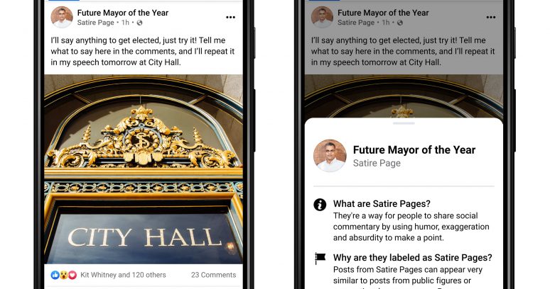 A ideia da vez é menos identificar estas seções como um mal da plataforma que ajudar o público a diferenciar rapidamente o que é sátira de informação. São três novas marcações que foram debutadas hoje como um teste nos Estados Unidos, incluindo “oficial público”, “página de fãs” e “página de sátiras”, mas o Facebook garante que mais selos serão revelados e aplicados nas próximas semanas.
