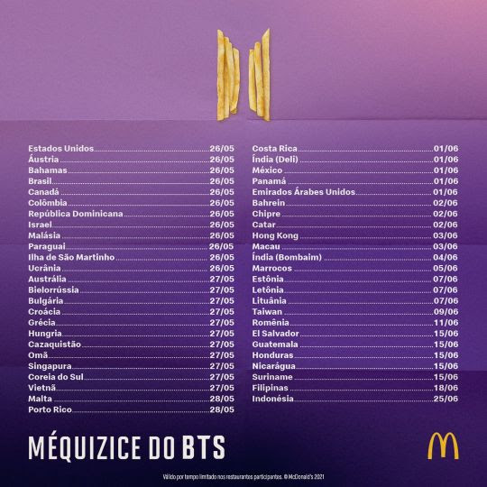 “A banda guarda ótimas lembranças do McDonald’s. Estamos animados com esta colaboração e mal podemos esperar para compartilhar o Combo BTS com o mundo”, diz a BIG HIT MUSIC, gravadora do BTS.