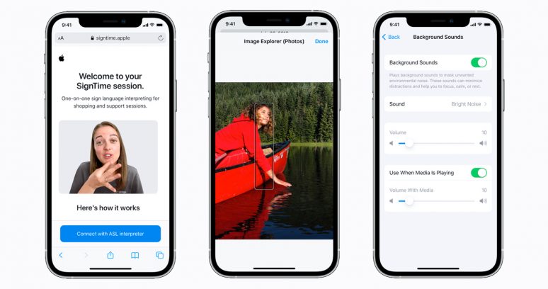 Com o SignTime, clientes da Apple poderão ir às lojas da Apple e receber auxílio na comunicação com maior facilidade, tornando o atendimento mais inclusivo. Pessoas com deficiências físicas poderão usar o Assistive Touch pelo Apple Watch, que detectará movimentos musculares e atividade nos tendões por seus sensores.