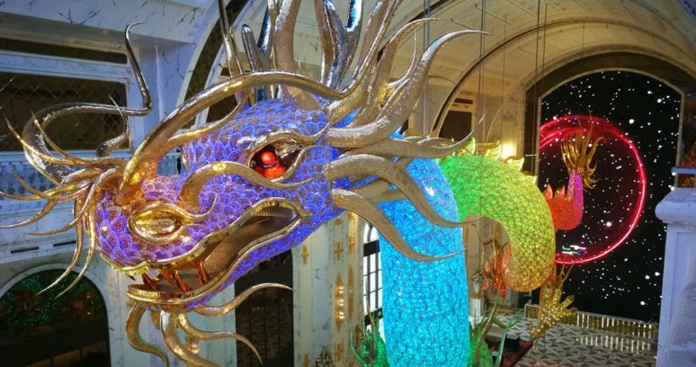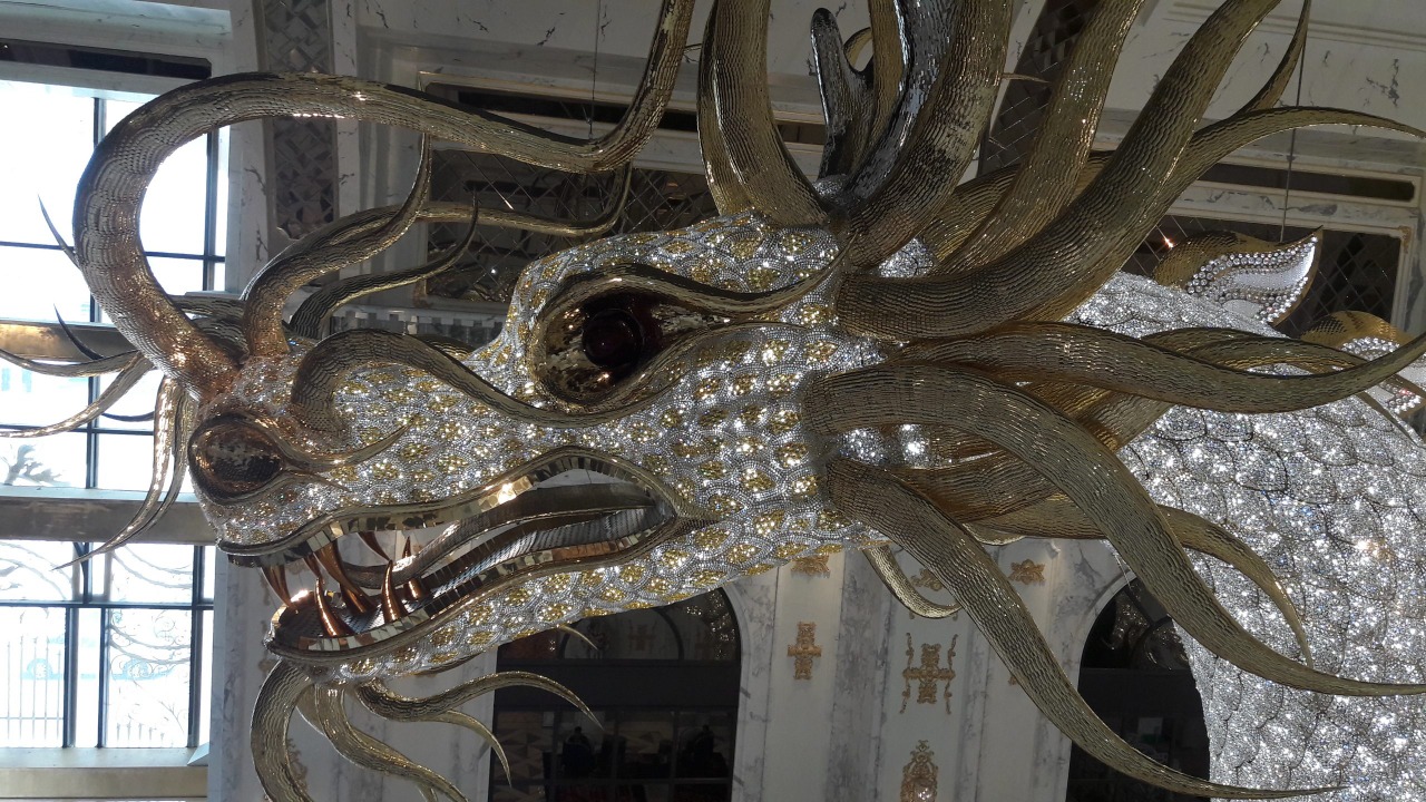 Os dragões são cobertos com mais de 13 mil escamas de aço inoxidável, com cada uma delas sendo feita à mão com quase 200 cristais Swarovski. No total, a instalação utiliza mais de 2,5 milhões de cristais, o que a dá o posto de maior joia já criada. Além disso, é também o maior lustre do mundo, com cerca de 300 mil chips LED que criam uma área de superfície iluminada de mais de 700 metros quadrados.