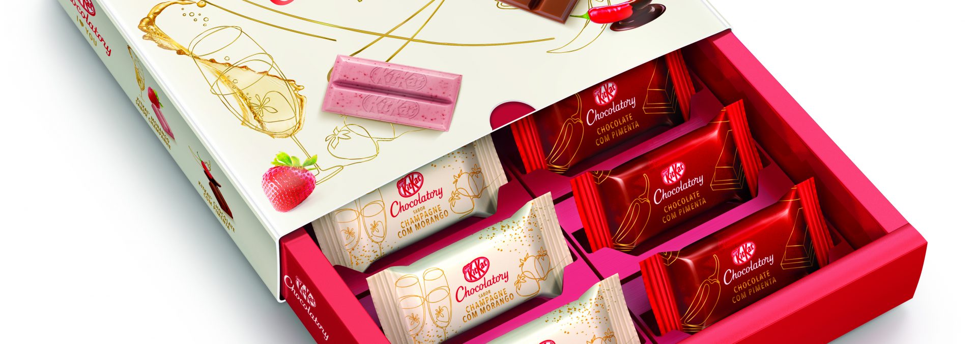 O KitKat anunciou nesta segunda (31) o lançamento de uma edição especial dedicada ao Dia dos Namorados no Brasil. Pensado apenas para a data, o produto busca provocar “os sentidos dos mais românticos” com sabores exclusivos de champagne com morango e chocolate com pimenta.
