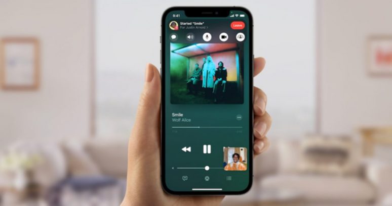 A ideia é simples, mas pela apresentação é super efetiva. A partir do FaceTime, o público pode compartilhar sessões de filmes e séries do Apple TV, audições do Apple Music e Apple Podcasts e até jogatinas do Apple Arcade. A sincroniza rola por celular, com a tela da chamada sendo diminuída e divida com outros aplicativos da empresa, e também com outros aparelhos, com o usuário podendo compartilhar a tela a qualquer momento – sem perder o passo da reprodução, de acordo com a Apple.