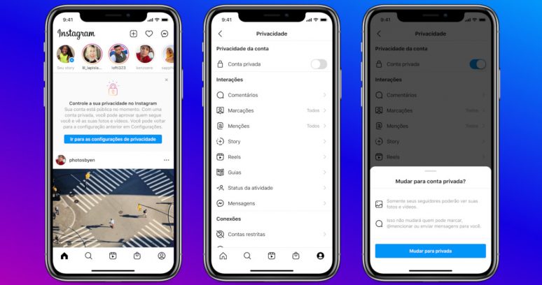 A partir desta semana, todos os menores de 16 anos (ou menores de 18 em alguns países) terão suas contas pré-definidas como privadas ao entrar no Instagram. Até então, a plataforma já orientava os jovens que optassem pela conta privada. E pesquisas recentes mostraram que eles apreciam uma experiência mais privada mesmo: “Durante o teste, 8 em cada 10 jovens aceitaram manter as configurações padrão de conta privada ao entrar na plataforma”, diz o comunicado do Instagram. Os jovens que optarem por ter uma conta pública na rede social receberão uma notificação destacando os benefícios da conta privada, e explicando como alterar as configurações de privacidade.