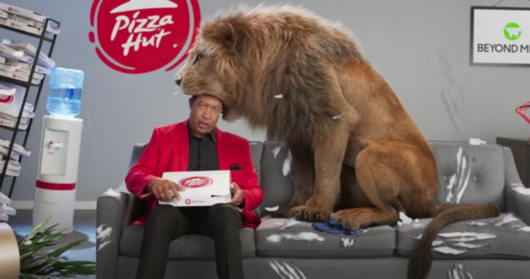 O mais recente anúncio da Pizza Hut mostra que sua pizza com carne à base de plantas é tão boa, que até um leão se enganaria. Usando um animal feito em CGI, a rede coloca o bicho para interagir com o ator americano Parker J. Patterson, que está sempre aparecendo em propagandas da marca no Reino Unido.