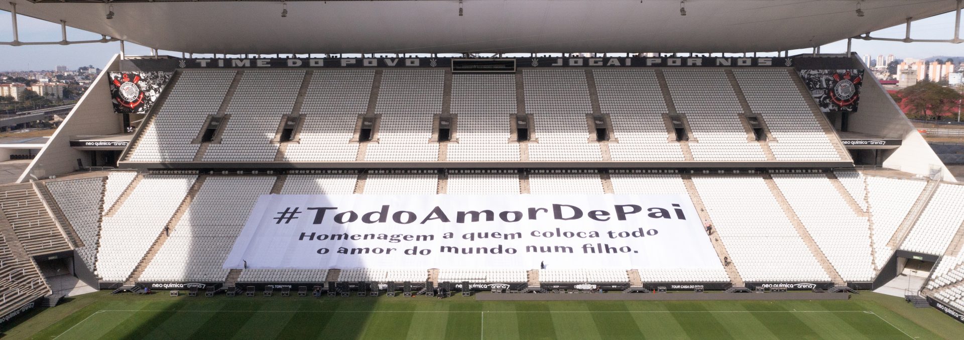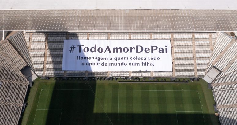 O Dia dos Pais é no próximo domingo, 8 de agosto, e para marcar a data O Boticário resolveu prestar uma homenagem a todos os celebrados no futebol. No último domingo (1), a marca estendeu um bandeirão na Neo Química Arena, promovendo a campanha “Todo Amor de Pai” durante a partida entre Corinthians e Flamengo pelo Campeonato Brasileiro.