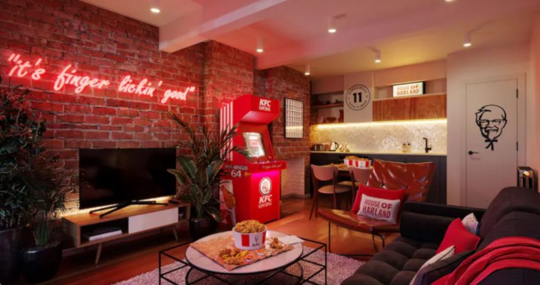 Situado em Londres, o hotel pop-up ganhou o nome de "The House of Harland", uma referência ao fundador do KFC e mascote da marca, Coronel Sanders
