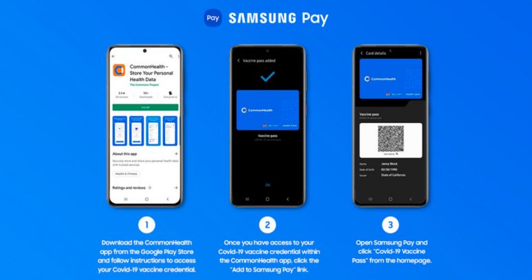A Samsung anunciou uma parceria com a organização sem fins lucrativos The Commons Project para digitalizar os registros de vacinação de seus usuários. Com isso, usuários do Samsung Pay, o sistema de pagamentos da gigante sul-coreana, poderão ter seus dados vacinais armazenados no app da Samsung.