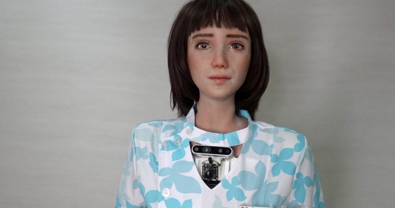 A empresa Hanson Robotics, de Hong Kong, apresentou o protótipo de uma enfermeira-robô projetada para interagir com pessoas em isolamento social. O projeto foi desenvolvido ao longo da pandemia de Covid-19, e foi pensado justamente para ajudar os pacientes que precisam ficar isolados no hospital por conta da doença.