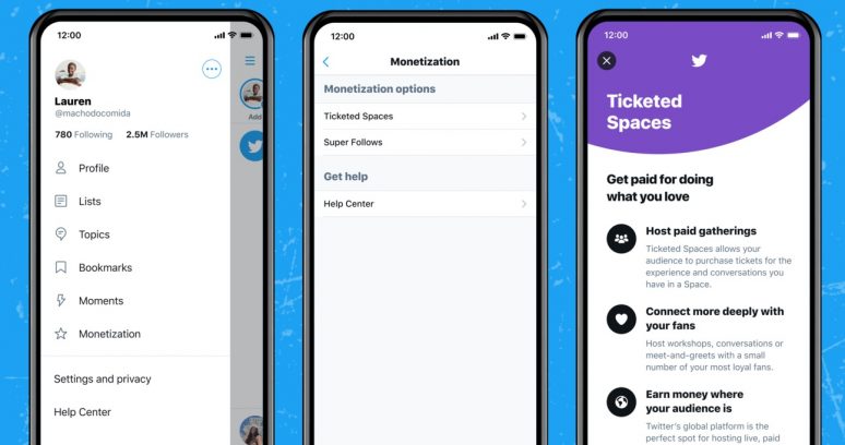 O início dos trabalhos da monetização do segmento acontece quase seis meses após a rede social lançar oficialmente o Spaces para Android e permite que o usuário cobre de 1 a 999 dólares pelo acesso às salas, além da habilidade de definir um limite de participantes. Em termos da divisão da grana, depois da coleta da taxa pelo Google ou a Apple o usuário terá direito a em tese 97% da grana arrecadada com o espaço criado, com o percentual caindo para 80% caso o volume chegue a algo igual ou superior a US$ 50 mil.