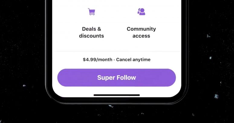 Anunciado oficialmente no fim de fevereiro, o Super Follow permite que o usuário cobre assinaturas mensais de US$ 2,99, US$ 4,99 e US$ 9,99 em troca do acesso, com até 97% da arrecadação estando disponível depois de processado pelo sistema de pagamentos da Stripe. A receita para a conta cai para 80% caso os ganhos cheguem a altura igual ou superior a US$ 50 mil durante todo o volume histórico em todo o portfólio de produtos monetizáveis do Twitter – incluindo os Spaces pagos.