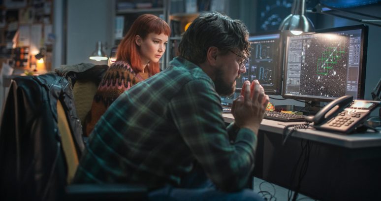 Em desenvolvimento desde 2019 e comprado da Paramount Pictures no início de 2020, o longa pela premissa oficial deve acompanhar os dois cientistas vividos por Lawrence e DiCaprio, que embarcam numa espécie de “turnê” para alertar as autoridades do impacto iminente de um cometa, mas “chamar a atenção da mídia e de um público obcecado pelas redes sociais se mostra um desafio chocantemente cômico” conforme ninguém faz o movimento simples de olhar para cima.