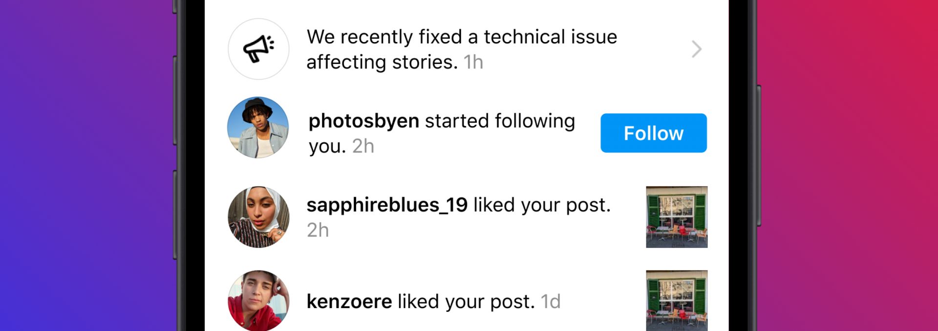 Na última segunda-feira (11), o Instagram anunciou o início de testes para uma nova notificação destinada a informar o público sobre problemas técnicos e erros da plataforma. A companhia no blog oficial escreve que o recurso deve aparecer na aba de notificações da conta e também pode ser usada para avisar questões pontuais do app, como erros de carregamento de Stories.