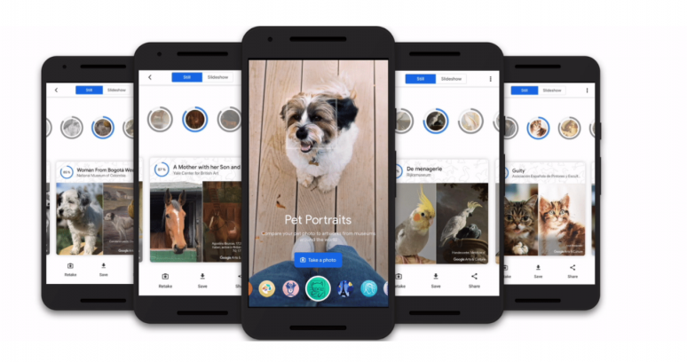 O segmento Arts & Culture do Google agora conta com um aplicativo que pode fazer você gastar um tempão em frente à tela, pois une fotos, arte e bichinhos de estimação. O Pet Portraits permite que você fotografe qualquer animal, seja um cachorro, gato, peixe, pássaro, réptil, cavalo ou coelho, e faça com que um algoritmo de aprendizado encontre peças de arte que apresentem outro bicho de aparência semelhante.