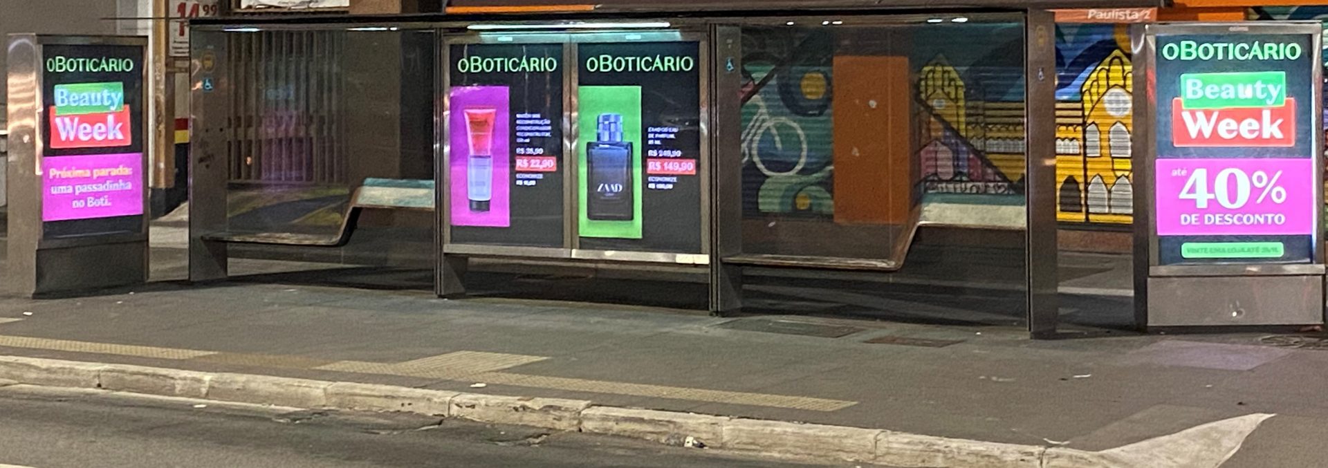 Na campanha de divulgação da “Beauty Week”, O Boticário contará com diversos formatos de mídia, entre eles, out-of-home. Em um dos pontos da Ótima, localizado na Avenida Paulista, de 16 a 22 de novembro, será possível conferir um “ponto de ônibus que fala”.
