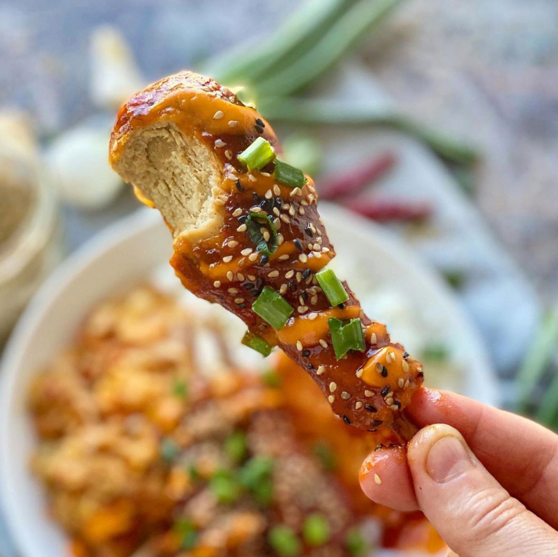O frango vegano usa ervilha como ingrediente base, o que também garante um nível substancial de proteína para o produto. Os ossos são reproduzidos com hastes de bambu e a pele é uma película proteica-lipídica. Com menos gordura saturada e mais fibras do que a versão de origem animal, o produto da Sundial Foods conta com aproximadamente a mesma quantidade de proteína (27 gramas por 100 gramas) que o frango normal (30,5 gramas por 100 gramas).