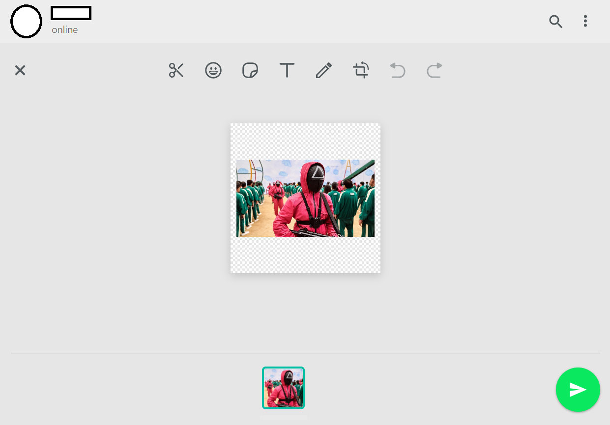 Usamos de exemplo uma foto da série “Round 6“, mas é possível delinear e cortar qualquer uma das suas fotos, além de adicionar emojis ou palavras a elas – e, magicamente, está pronta a sua nova figurinha, inclusive com o rostinho lindo dos seus amigos!