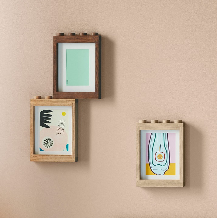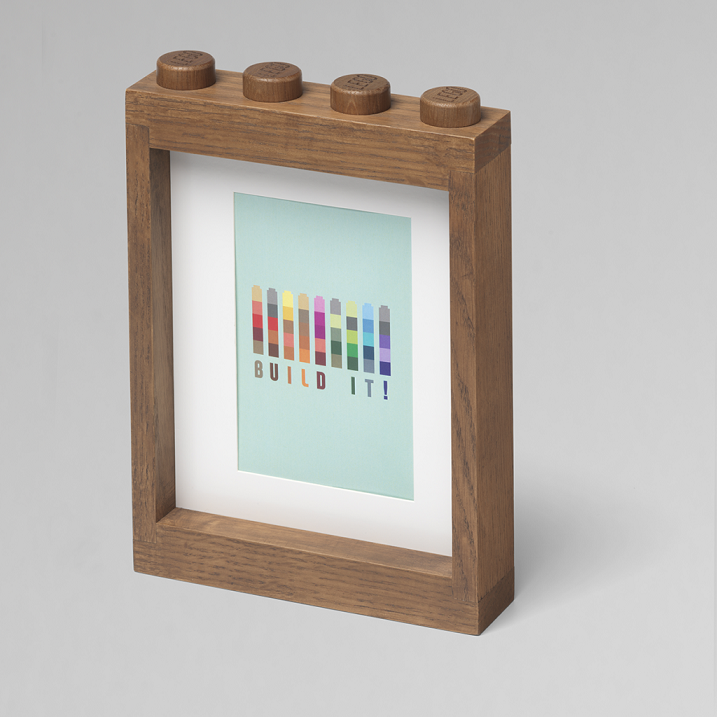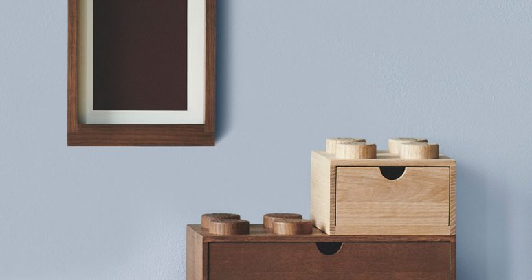 A coleção Room Copenhagen x LEGO é construída em madeira, que um dia já foi o material utilizado para desenvolver os brinquedos LEGO. São cabides de parede, porta-retratos, estantes de livros e gavetas de mesa com puxadores marcados pela LEGO em carvalho ensaboado e acabamentos em carvalho escuro manchado.