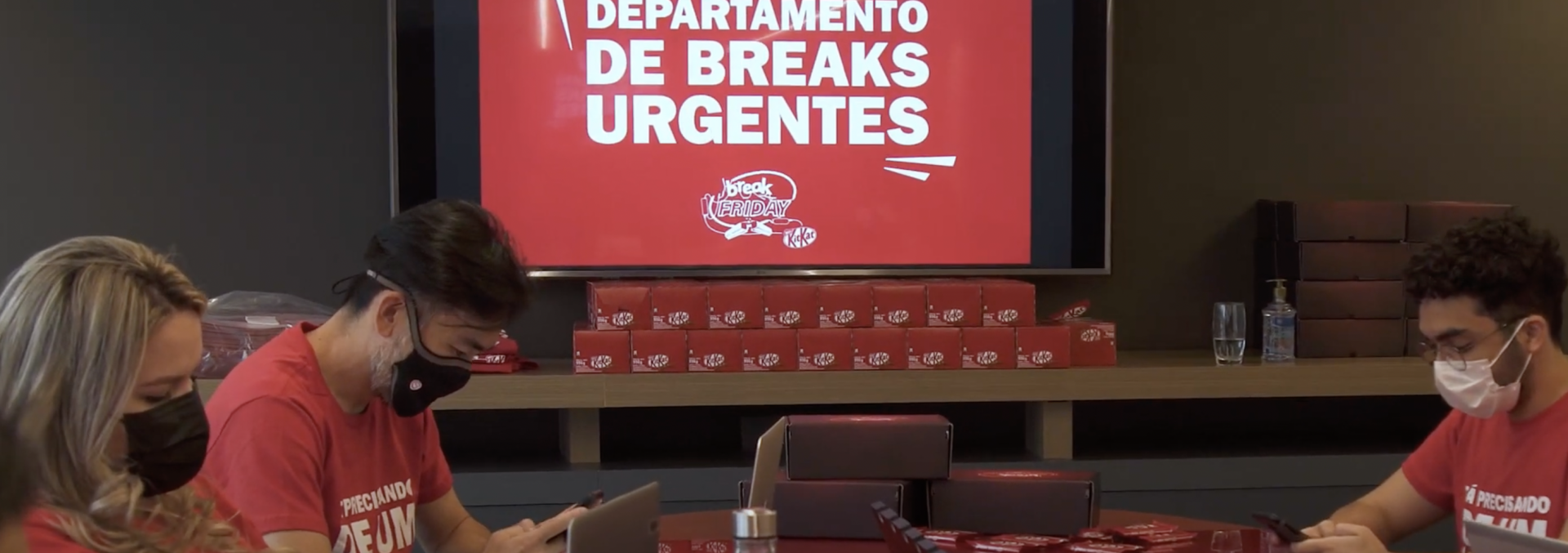 Idealizada pelo Content Studio Nestlé e agência Ogilvy Brasil, a ação começou lá no dia 25 de novembro, às vésperas da Black Friday, com uma série de provocações nas redes sociais. Nos vídeos, o Kit Kat apresentou as mais caricatas e absurdas possibilidades de compras por impulso, com a expectativa de que as pessoas também compartilhassem suas narrativas usando a hashtag “#breakfriday“.