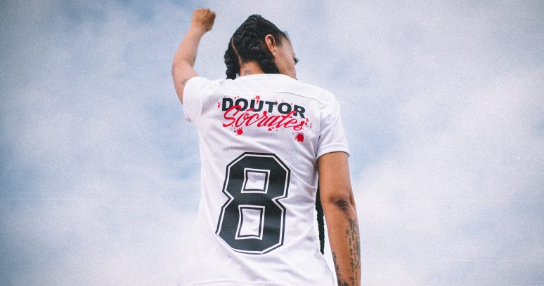"Doutor Sócrates" traz silhueta da comemoração icônica do jogador que participou ativamente da Democracia Corinthiana
