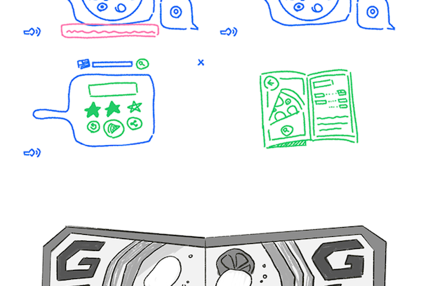 Inclusive, demorou um pouco até que o Google chegasse ao conceito ideal do minijogo, conforme mostram os esboços: