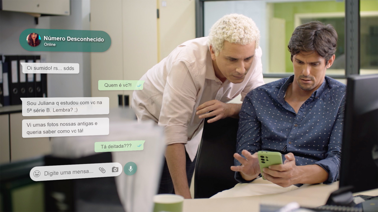 A primeira esquete da campanha já está no ar. Chamado “Golpe“, o vídeo tem roteiro de Matheus Mad, direção de Zaga Martelletto e atuações de Rafael Infante e Rafael Portugal. O filme explica o funcionamento dos golpes aplicados utilizando engenharia social de forma divertida e marca o lançamento do site Golpes Manjados. Esse hub reunirá informações educativas sobre segurança em tom cômico, incluindo dicas importantes sobre como habilitar a confirmação em duas etapas do WhatsApp, sempre confirmar a veracidade de pedidos recebidos no app, além de trazer figurinhas e recursos de áudio e gifs para serem compartilhados.