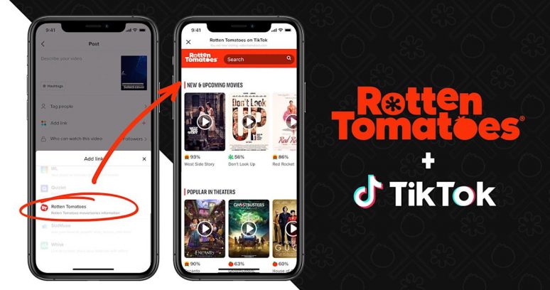O Rotten Tomatoes anunciou na última terça-feira (14) que se associou ao TikTok para permitir que os usuários acessem trailers, resenhas e informações de seus filmes e programas de televisão favoritos. Além disso, com o recurso “Jump” do aplicativo será possível adicionar outros vídeos sobre qualquer título em particular.