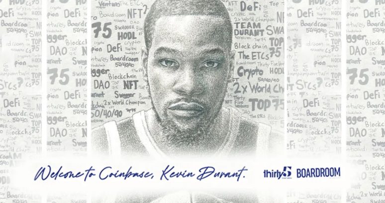 Não é recente o interesse de Kevin Durant, astro da NBA, pelas moedas digitais. A novidade é que Durant, sua empresa de capital de risco Thirty Five Ventures e sua rede de mídia Boardroom anunciaram uma parceria estratégica com a plataforma de criptomoedas Coinbase.