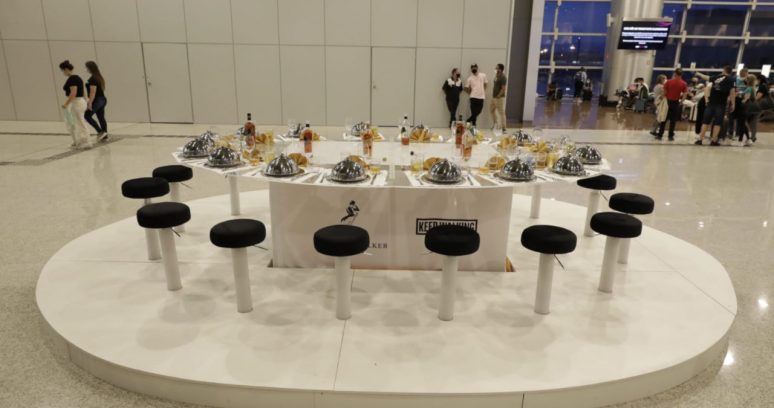 A fim de convidar as pessoas a sentarem à mesa para uma celebração, Johnnie Walker, marca de whisky da Diageo, convidou para um happy hour surpresa quem circulava na noite da última quarta-feira, 22/12, pelo saguão do Aeroporto Internacional de Guarulhos, em São Paulo.
