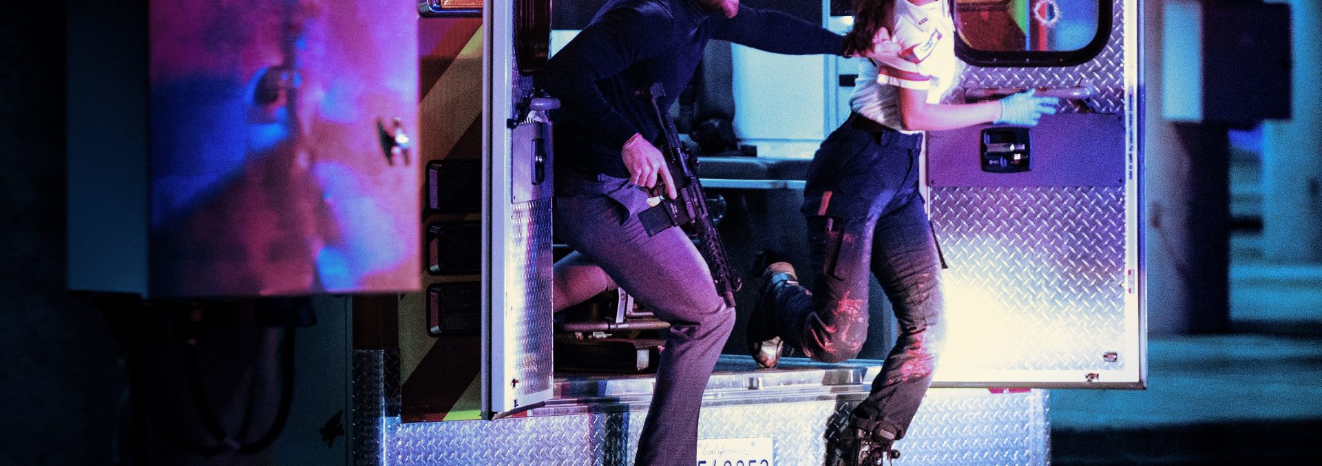 O que há de diferente entre os dois filmes é a inserção do elemento civil, entretanto. Enquanto “Dragged Across Concrete” é outro dos trabalhos de Zahler que se banha no pulp para brincar com limites (e daí talvez derive boa parte do thriller), Bay é bem mais comedido, optando por enquadrar figuras e arquétipos nascidos nos caminhos da ação desenfreada de “Ambulância”. Essa noção é muito melhor sacramentada na personagem de González que nos assaltantes irmãos, por sua vez, até porque seu drama move mais a tensão: em meio ao sequestro e a perseguição, a socorrista não só lida com as mudanças constantes dos criminosos como ainda precisa manter vivo um policial ferido na ação (Jackson White), dado que sua morte pode acarretar numa reação revanchista por parte das forças oficiais nos bandidos.