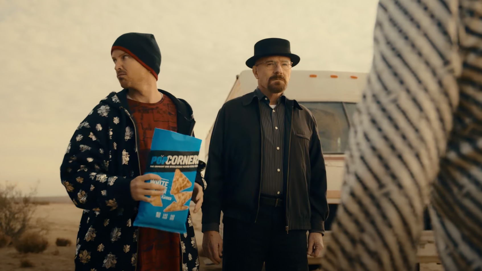 A linha de de salgadinhos de milho PopCorners, da Frito-Lay, alega ser a primeira a promover o revival de uma série aclamada para o Super Bowl. Carece de fontes, mas, de qualquer maneira, é o primeiro “retorno” de “Breaking Bad” após o fim da série há quase 10 anos.