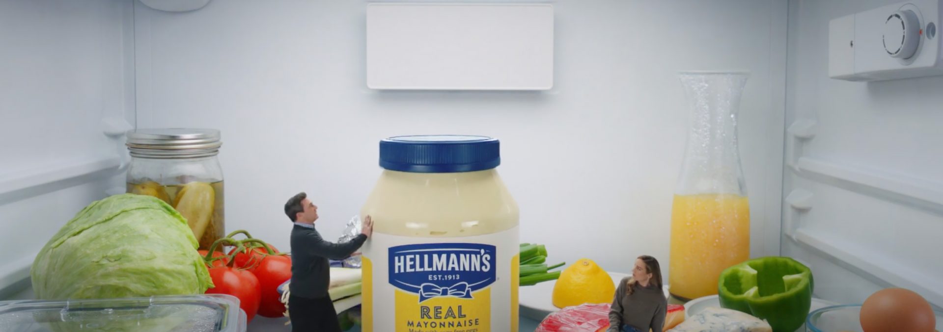 No comercial para o Super Bowl 2023, a linha da Unilever faz trocadilhos com os nomes de Brie Larson (queijo Brie) e Jon Hamm (presunto). Ambos os atores estão presos na geladeira quando aparece o comediante Peter Davidson, ex-integrante do Saturday Night Live, e decide transformá-los em um sanduíche com maionese Hellman’s.