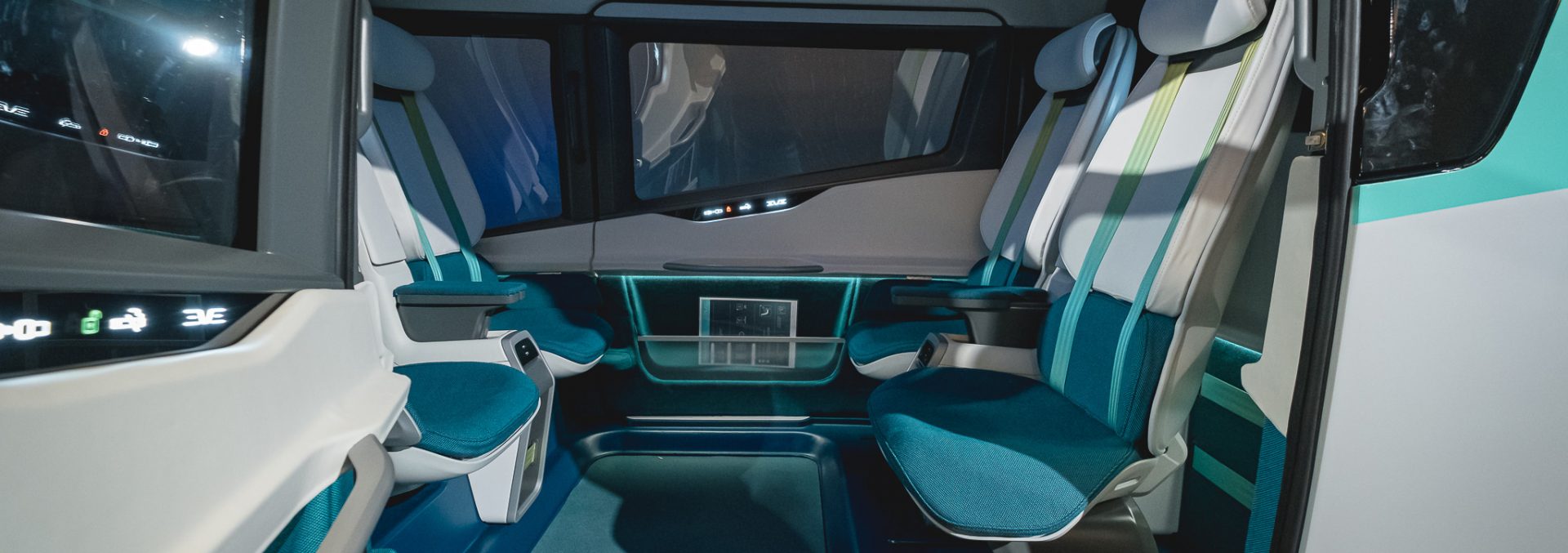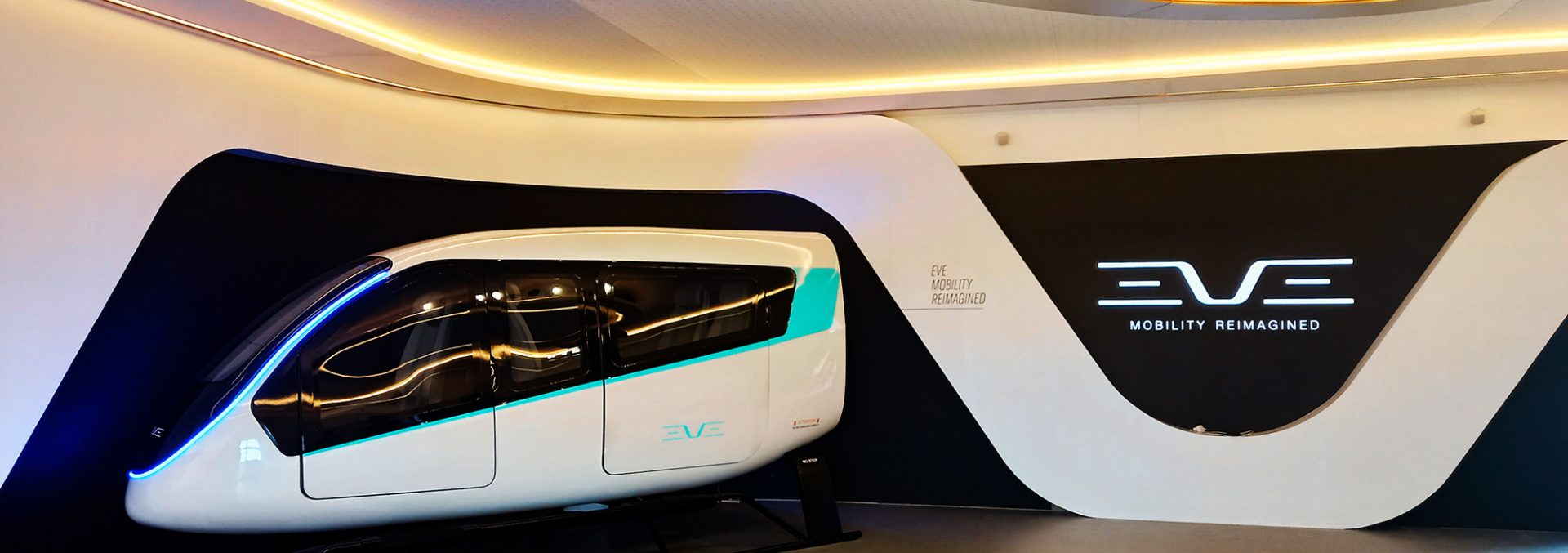 A cabine eVTOL da Eve foi apresentada pela primeira vez no Farnborough Airshow, no Reino Unido, em 2022. Seu desenvolvimento foi feito a partir de experiências de simulação e estudos da experiência do passageiro para criar uma maneira acessível, segura e sustentável de viajar.