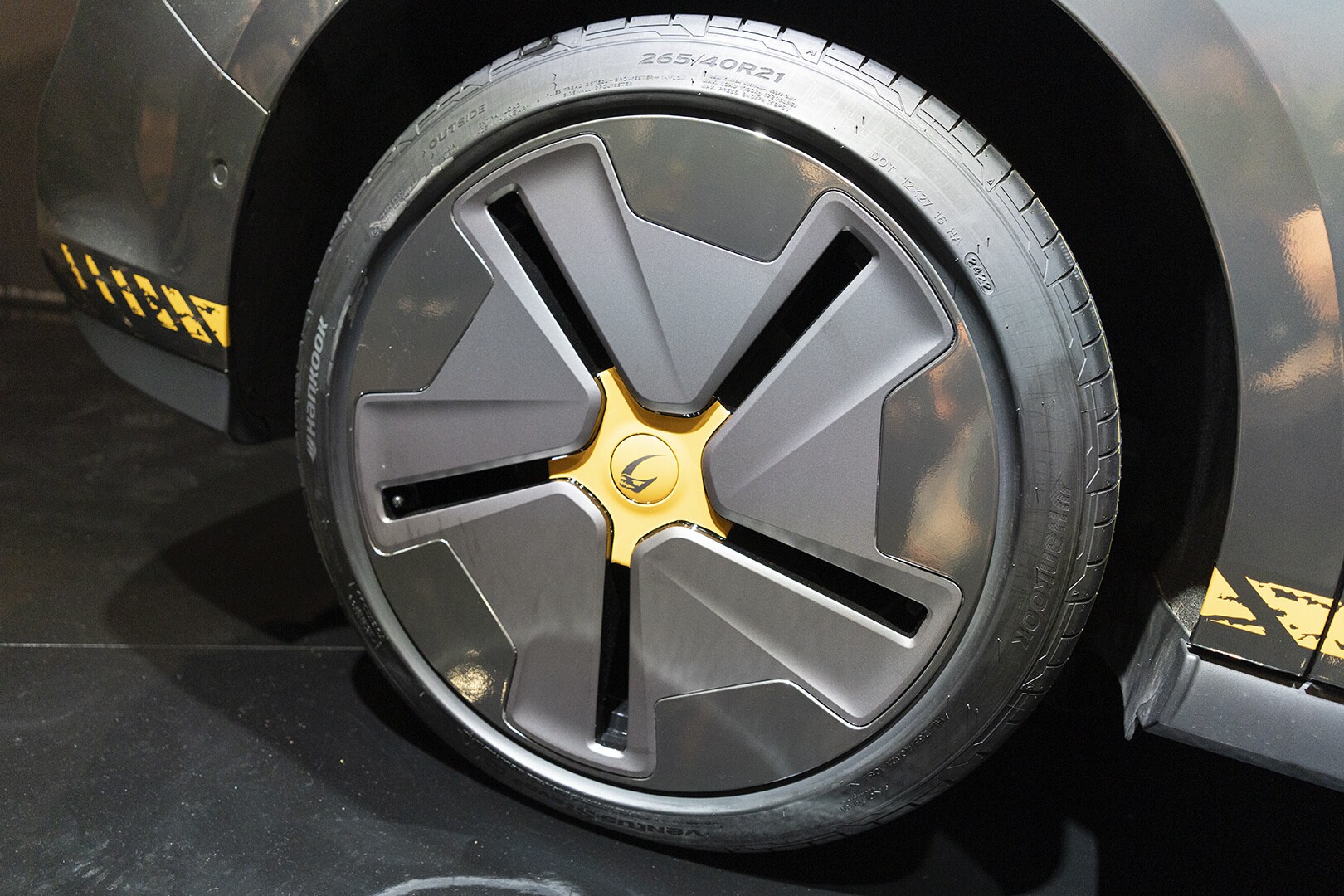 Detalhes marcantes: Os destaques do design incluem as rodas, com o logo mudhorn, e o visual geral do veículo, que mescla a identidade de ambas as marcas.