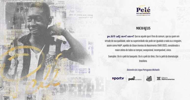 • Pelé vira verbete no Michaelis: a oficialização ocorreu nesta quarta-feira, 26, durante o Sport Summit, em São Paulo. Joe Fraga, diretor executivo da Pelé Foundation, recebeu um quadro com o verbete das mãos de representantes do SporTV e da editora Melhoramentos, responsável pelo Michaelis.