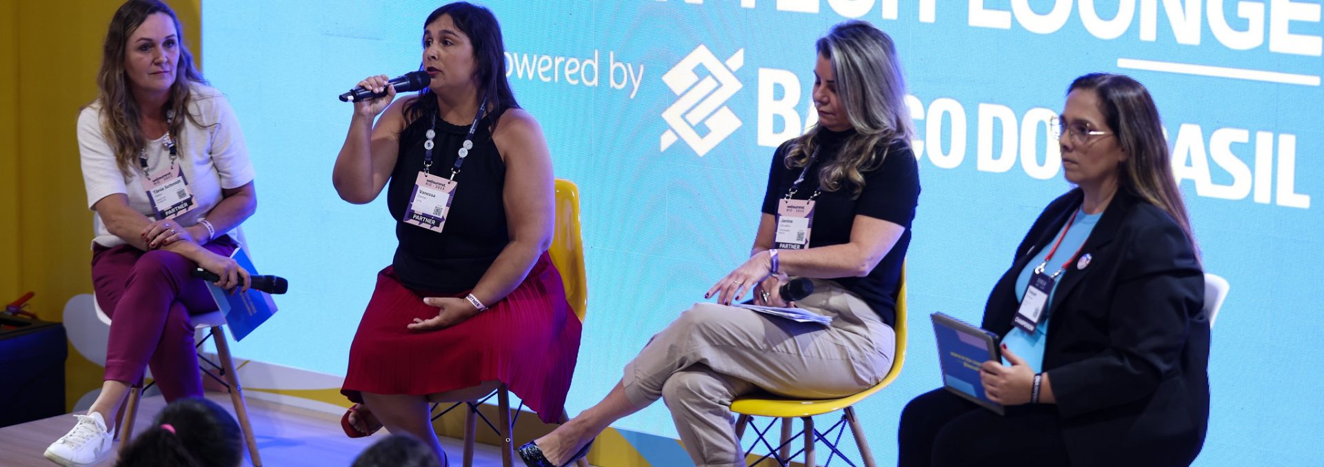 Foi possível vivenciar espaços inclusivos para mulheres, como, por exemplo, o “WOM=N In Tech” (Women In Tech), proporcionado pelo Banco do Brasil que permitiu que mais mulheres acessem o evento, com ambientes próprios para conexões, rede de apoio e possível geração de negócios.