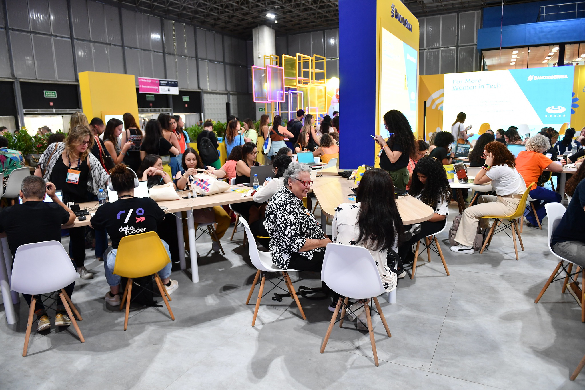 Neste mar de gente, estudantes. Muitos. Hiperconectados, sedentos por novas tecnologias, plurais. Aqui se percebeu, de forma nítida, uma presença mais forte de mulheres em tech e número crescente de empreendedoras. Reflexo dos dados da última pesquisa do Caged, na qual aponta crescimento de 60% na participação feminina no mercado de Tecnologia da Informação, de 2017 a 2022. Que bom! Quando inovações saem de mentes homogêneas demais, elas fatalmente não atenderão a todos os anseios de um público tão variado.