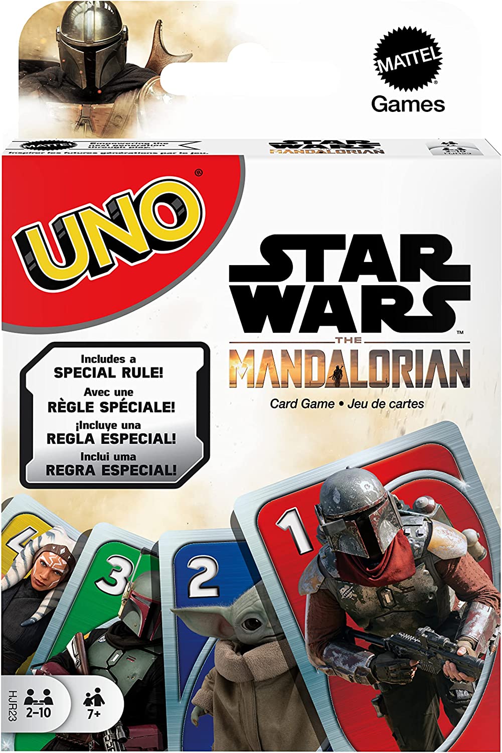A versão Mandalorian do clássico UNO traz as mesmas regras, mas com artes dos personagens da série. Uma lembrança divertida e acessível para fãs da saga e de jogos de cartas leves.