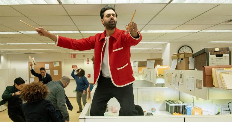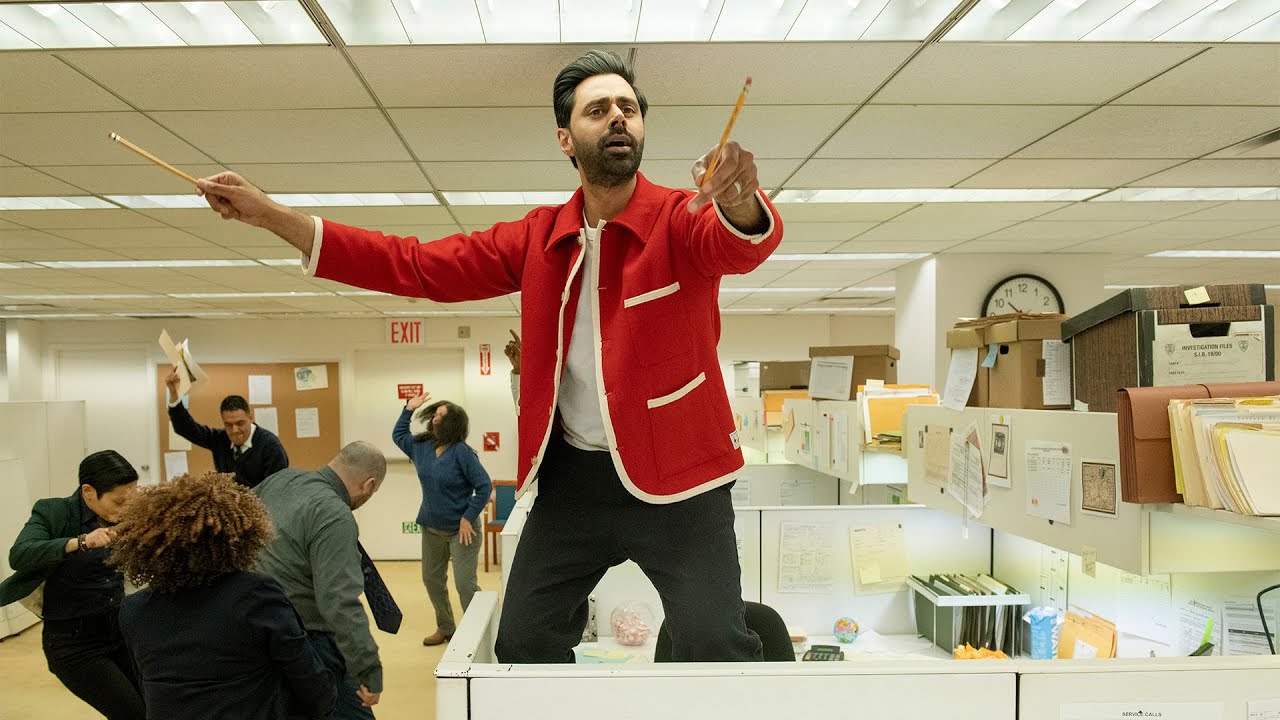 • O caos se instala: Os trabalhadores, agora “libertos”, começam a destruir seus suprimentos de escritório, incentivados pelo grito de guerra de Minhaj: “Você tem se afogado em papelada. Isso acaba hoje!” Em uma referência irônica ao filme de 1999 dirigido por Mike Judge, uma mulher ataca uma impressora com um taco de beisebol, um cara serra sua mesa ao meio ao perceber que agora pode “trabalhar em qualquer lugar”, e a revolta culmina com o arremesso de um arquivo condenado pela janela.
