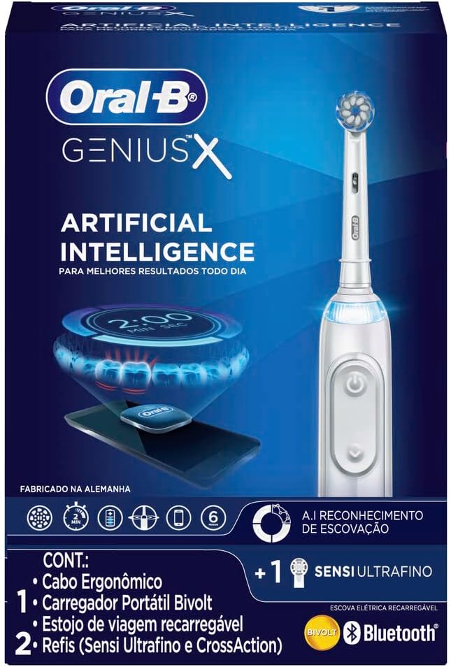 A Escova Elétrica Recarregável Oral-B Pro 100 é um presente que combina tecnologia e cuidado pessoal. Com cerdas ultrafinas e motor potente que proporciona movimentos oscilatórios, rotatórios e pulsantes. Ela ainda vem com um timer embutido que avisa quando é hora de mudar a área de escovação.