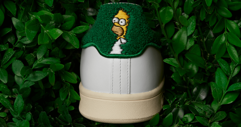 Homer Simpson agora desaparece nos arbustos no emblemático tênis Stan Smith, graças à nova colaboração entre Adidas e “Os Simpsons”.