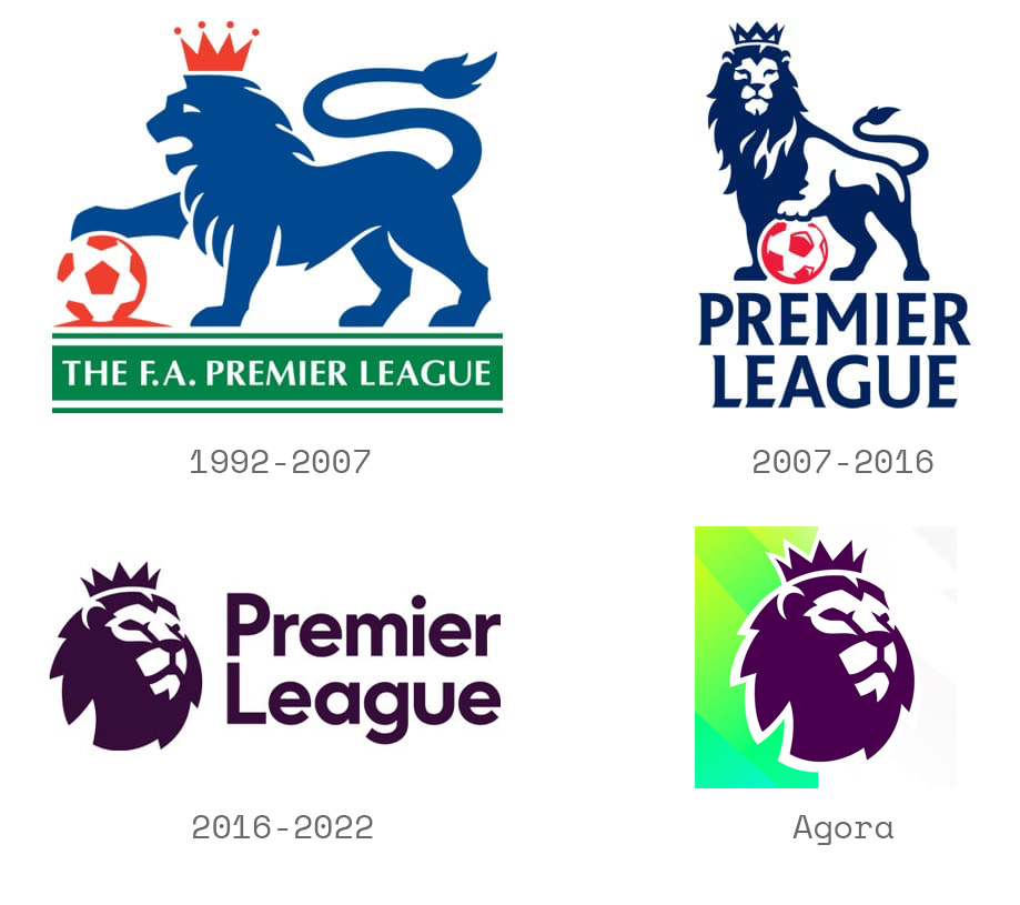 Fusão de Versões Anteriores: O novo logo combina as duas versões anteriores, posicionando o leão no centro do palco. A palavra “Premier League” foi separada do símbolo, permitindo uma comunicação mais ágil.