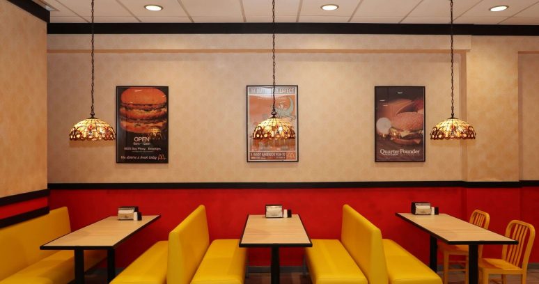 • Decoração Vintage: A loja foi decorada com elementos clássicos dos anos 1980, como murais de personagens icônicos do McDonald’s e até um skylight.