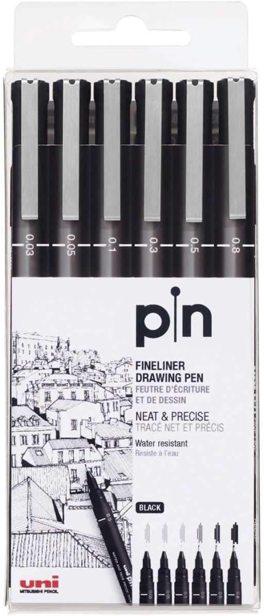 Um conjunto de canetas técnicas Uni-Ball Pin, ideais para desenhos técnicos, esboços e escrita precisa. Oferecem linhas nítidas e consistentes, perfeitas para profissionais e entusiastas de artes.